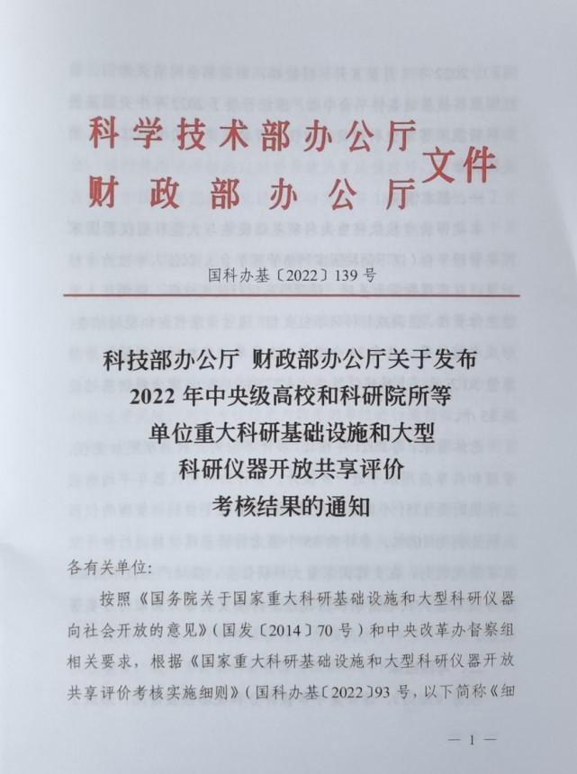 本次考核共有全国24个部门345家单位参加,涉及原值50万以上的科研仪器共计4.7万台(套),重大科研基础设施85个。根据专家集中审核评分和现场核查,共有50个单位管理制度规范、科研仪器设备运行使用率高、对外开放共享成效明显,考核评定结果为“优秀”,我所位列其中,排名第45名(2021年考核结果为第52名,良好)。